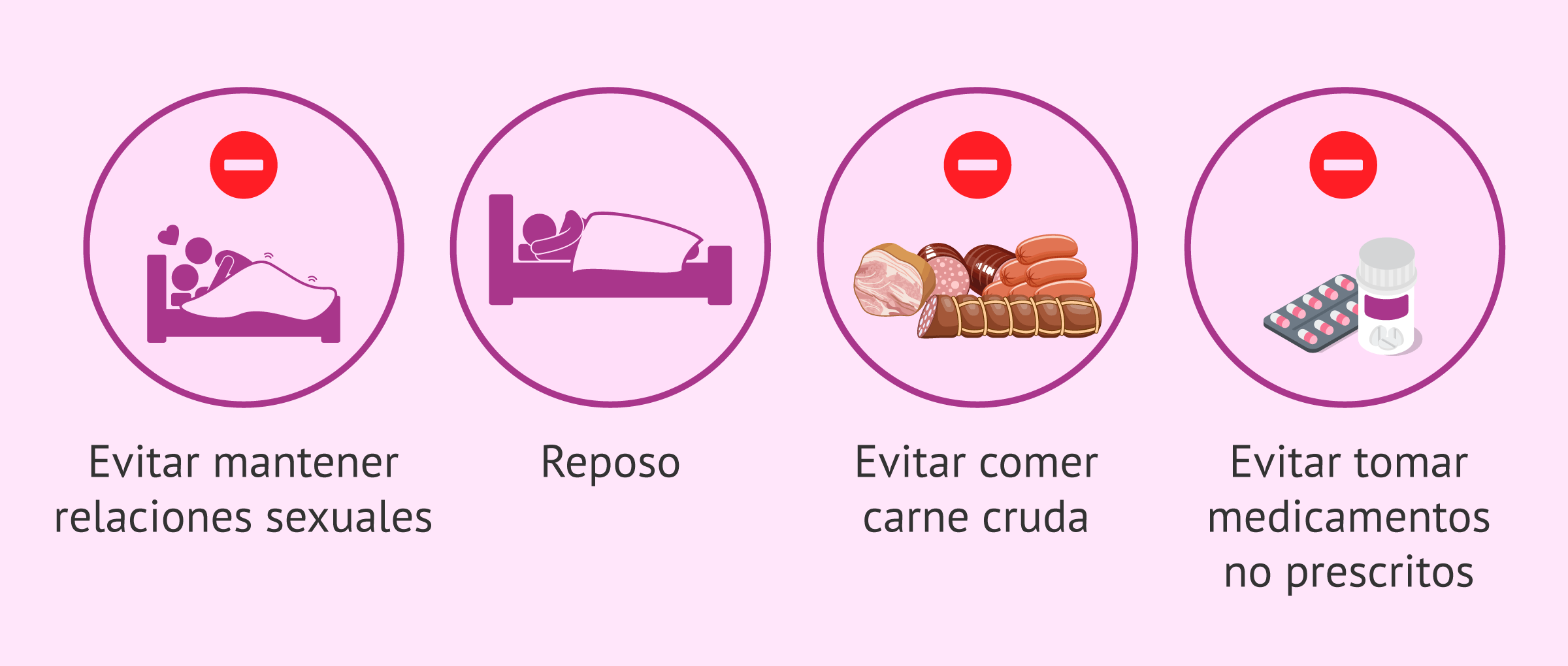Ante una amenaza de aborto, se deben seguir una serie de cuidados para aumentar las posibilidades de que el embarazo llegue a término. Se recomienda no tener relaciones sexuales, estar en reposo, no comer alimentos cárnicos crudos y evitar tomar medicamentos que no hayan sido prescritos por el médico.