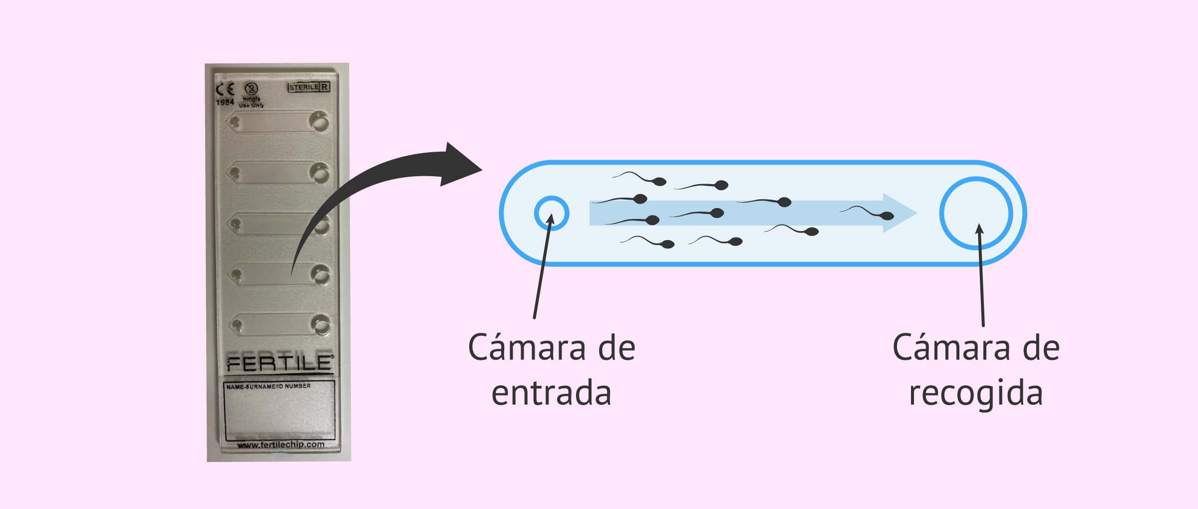 El Chip Fertile es un moderno dispositivo diseñado para seleccionar los espermatozoides con menor fragmentación en la doble cadena de ADN y con mejor motilidad. Este dispositivo consta de dos cámaras conectadas por un canal microfluídico.