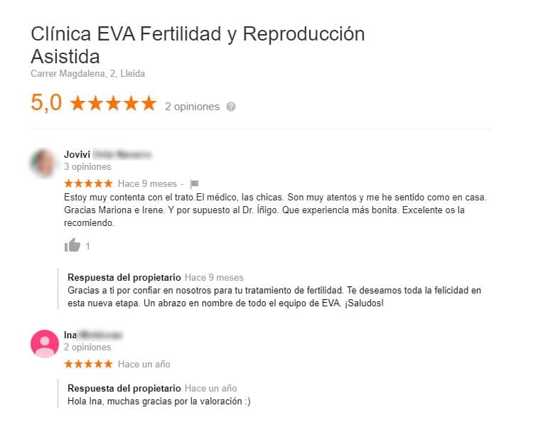 Opiniones de clínica EVA Lleida