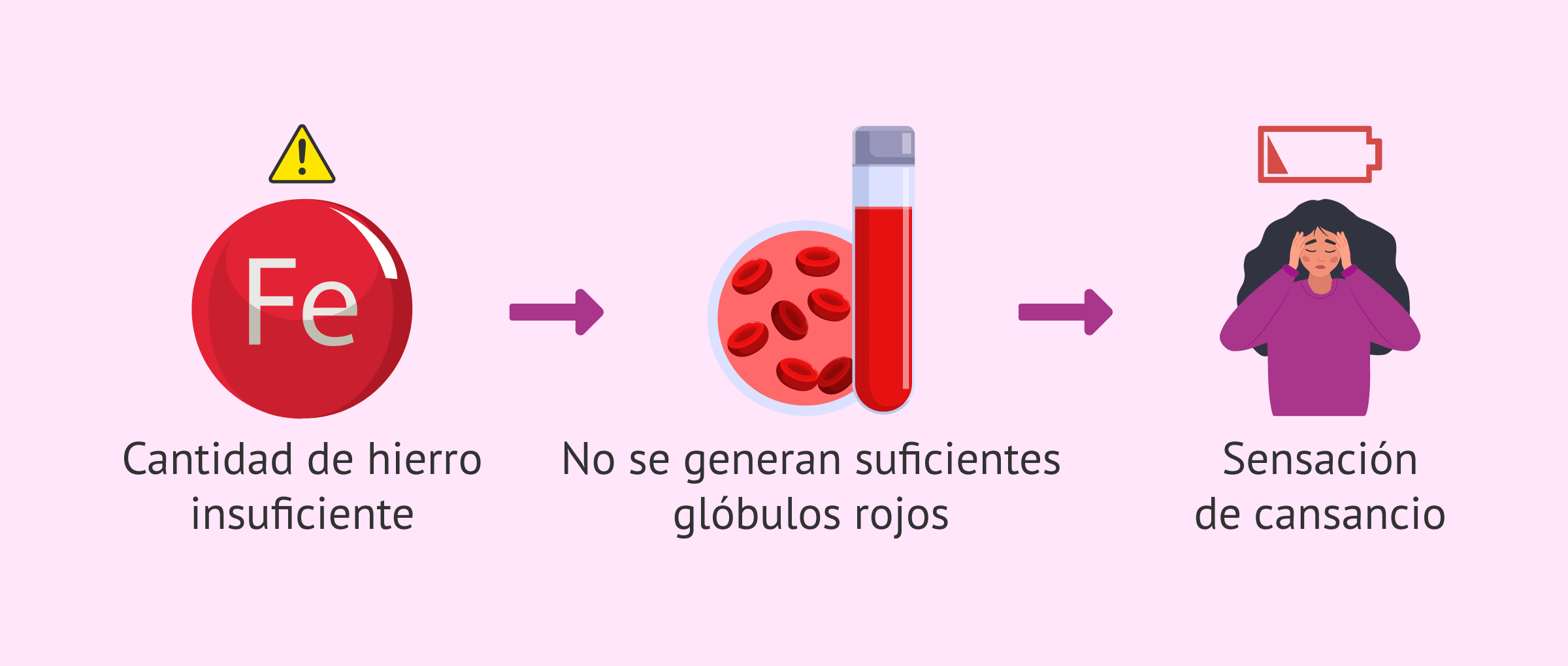 Muchas mujeres se sienten más cansadas cuando les baja la menstruación. Esto es debido a la disminución de los niveles de hierro en sangre tras la menstruación. Si la cantidad de hierro en el organismo disminuye, no se producirá la correcta cantidad de glóbulos rojos.