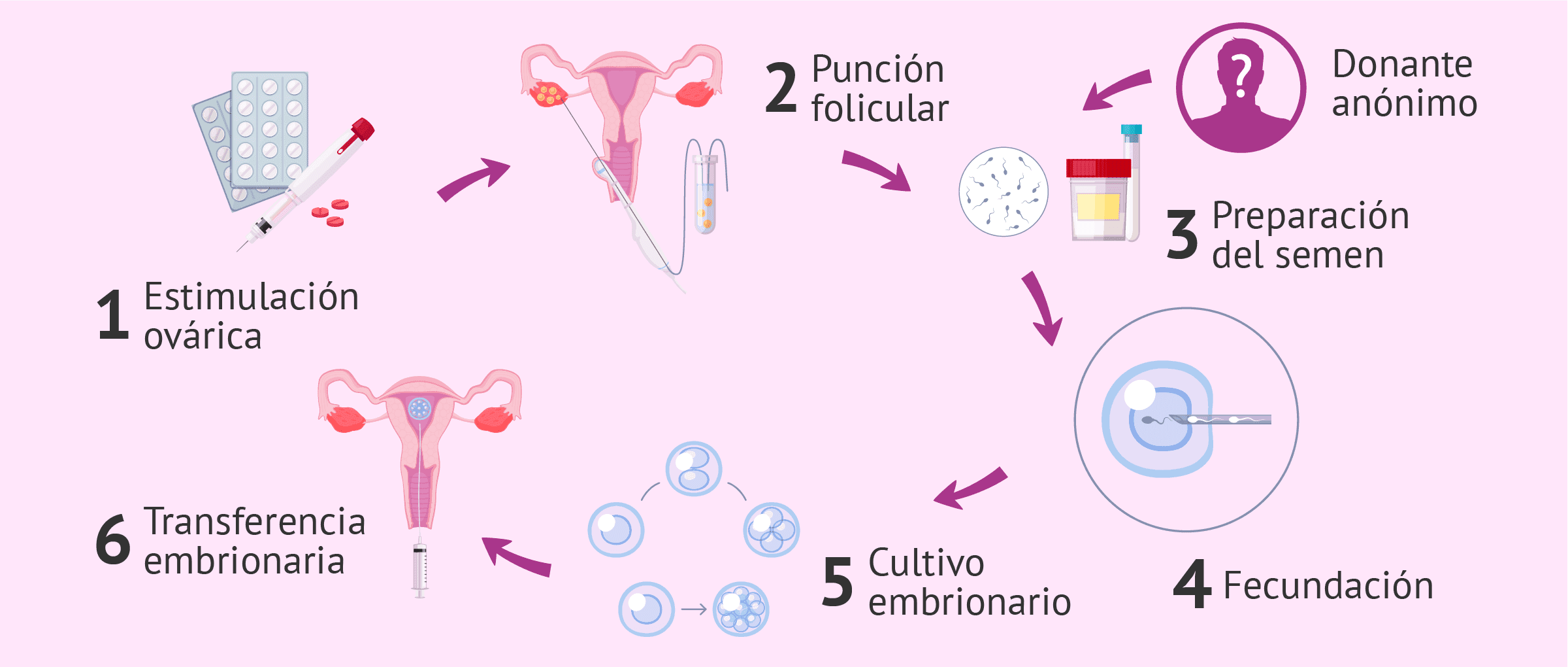 Una mujer soltera puede ser madre mediante la fecundación in vitro utilizando el semen de un donante. El tratamiento consta de los siguientes pasos: