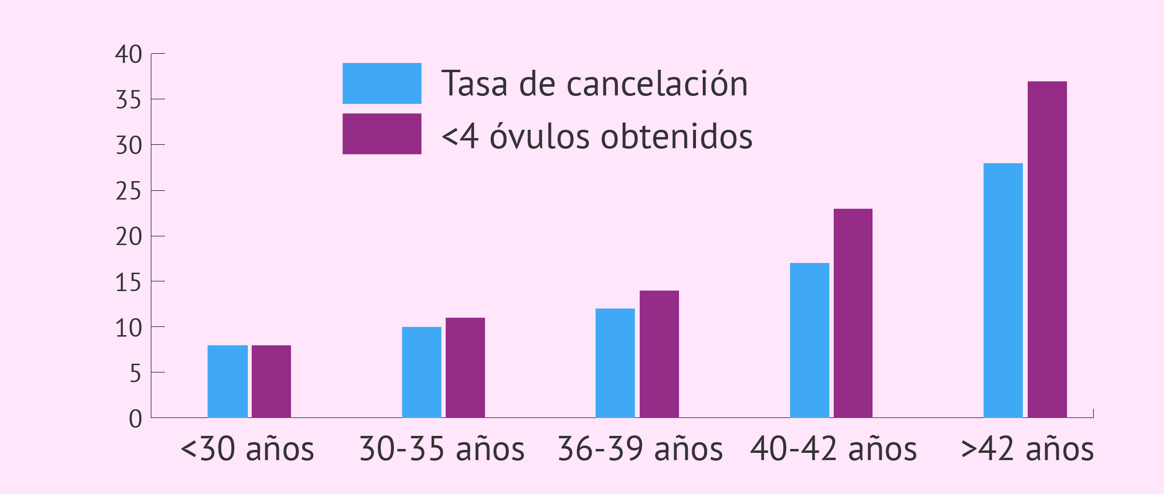 La edad reproductiva avanzada es una de las principales causas por las que se puede dar una baja respuesta ovárica. Como se puede ver en el gráfico, la probabilidad de baja respuesta aumenta en pacientes con una edad materna avanzada (> 40 años).