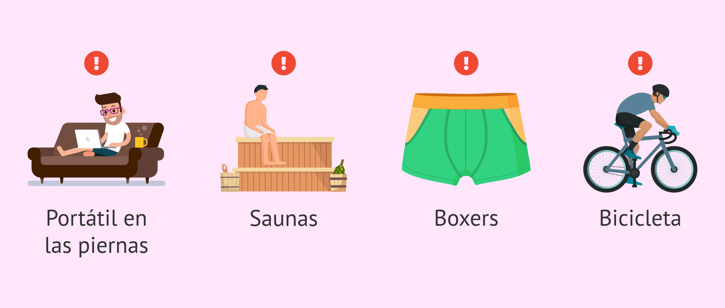 Por ello, es importante evitar ponerse el ordenador portátil sobre las piernas o utilizar saunas con frecuencia. Además, usar ropa interior ajustada, tampoco sería conveniente ni recorrer largas distancias en bicicleta.